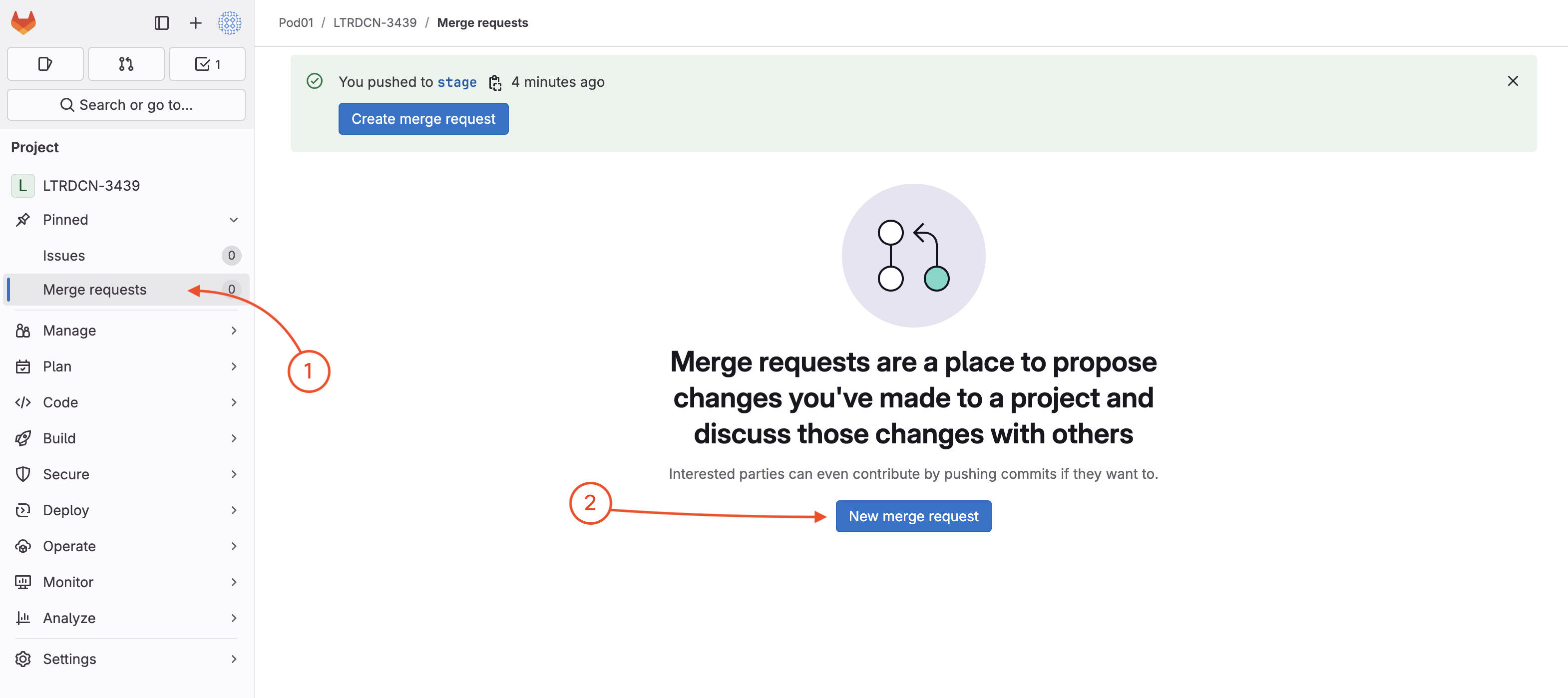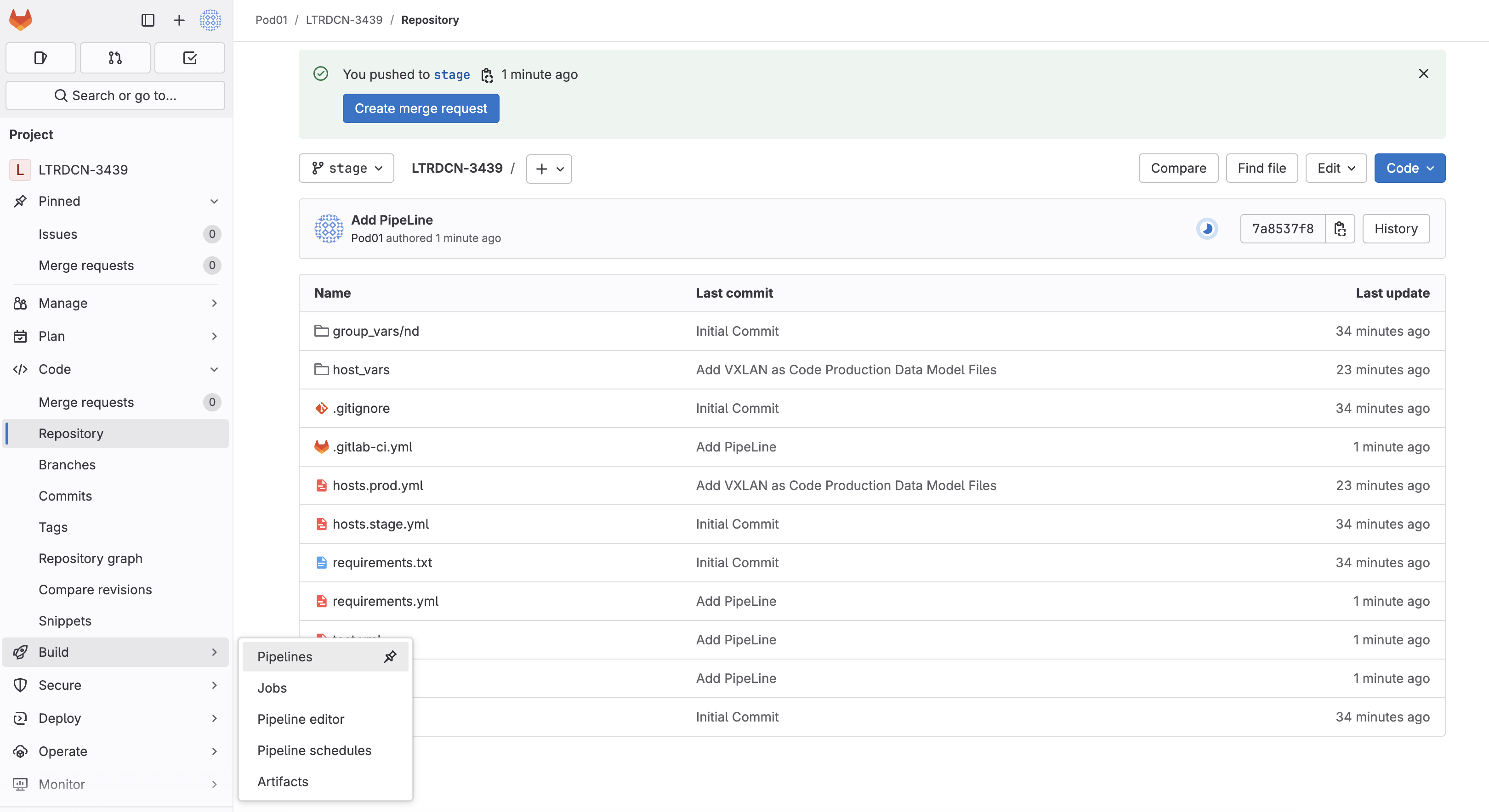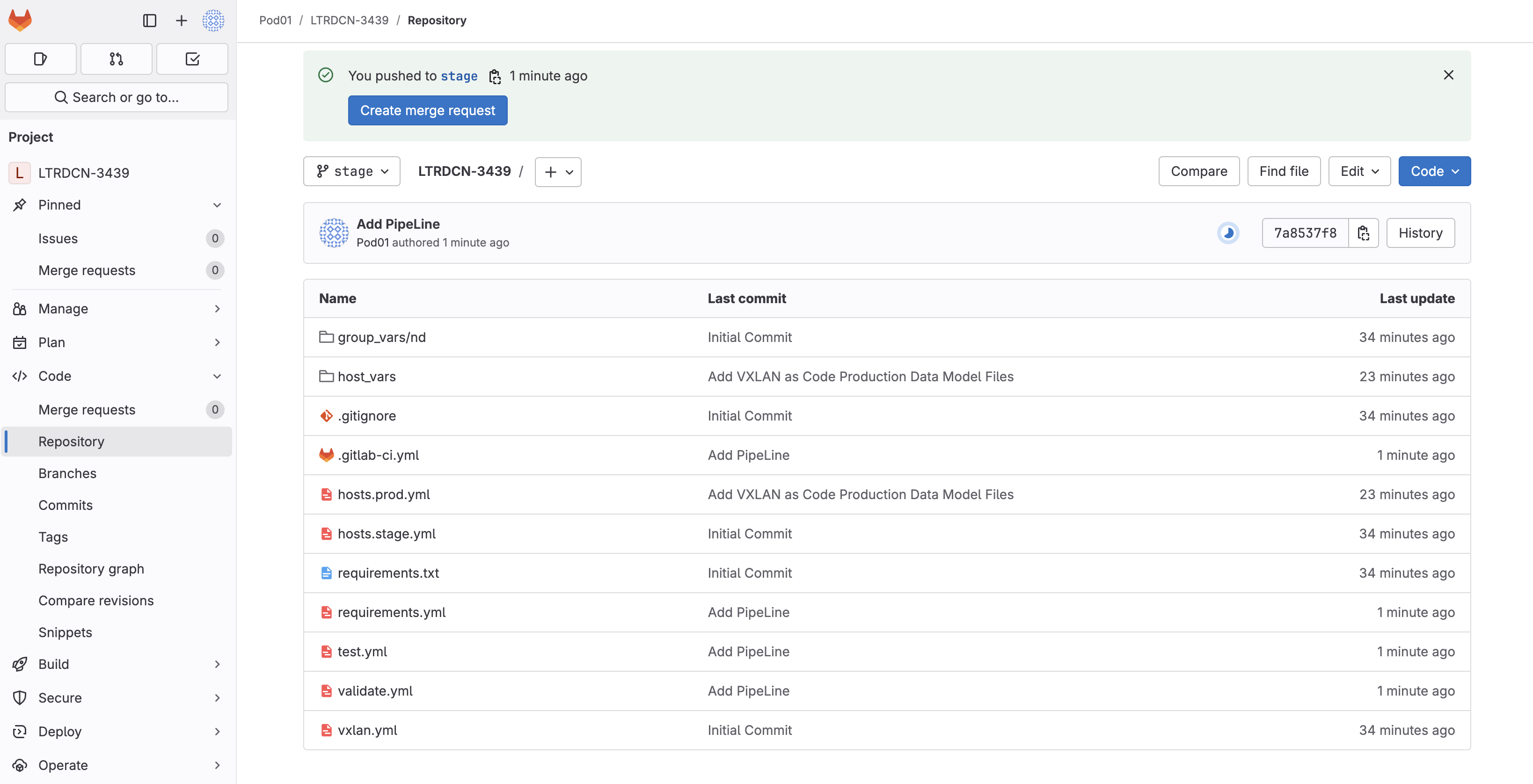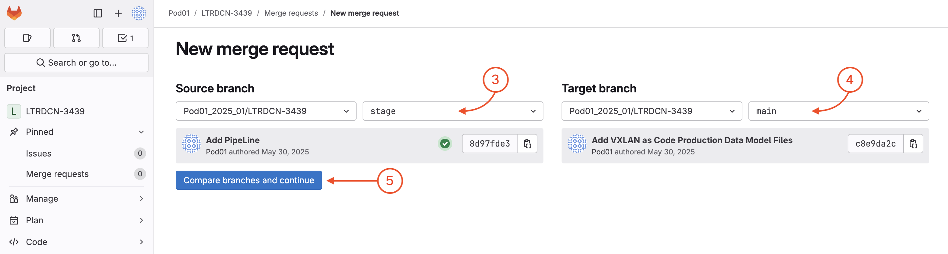 Now we need to create merge request to verify/test the configuration against the NDFC staging environment fabric.